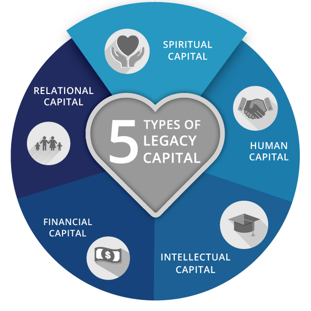 Our faith, values and purpose serve as the moral compass to guide us through each of the five primary legacy capitals. The legacy we create for loved ones will ultimately be shaped by our beliefs in each area listed below: